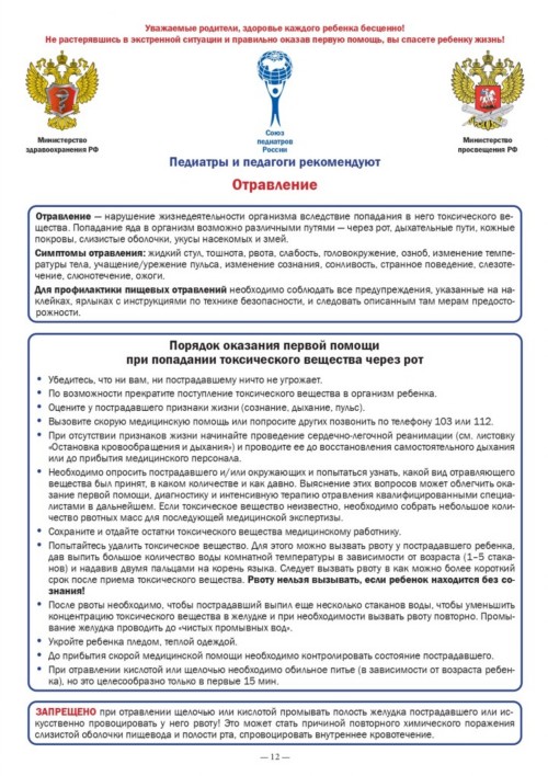 Памятки по профилактике заболеваний и обеспечению безопасности детей и взрослых