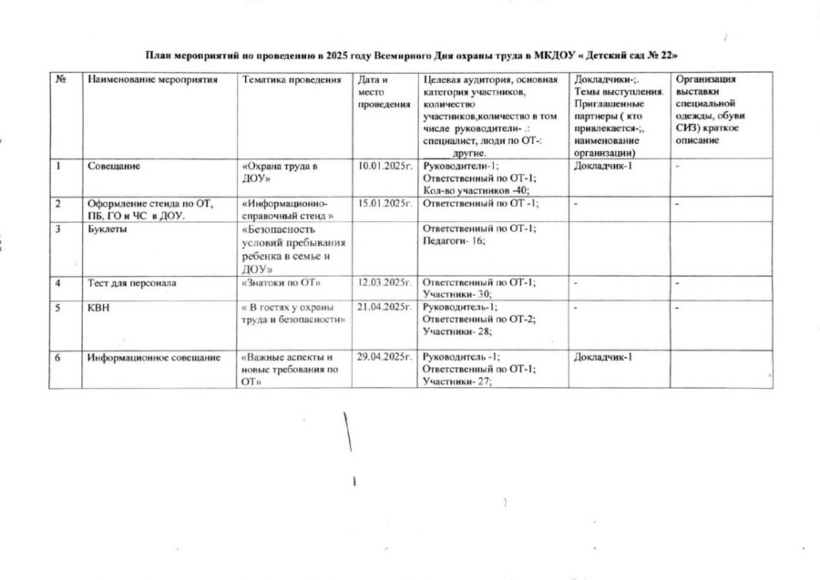 План мероприятий по проведению в 2025 году Всемирного Дня охраны труда: